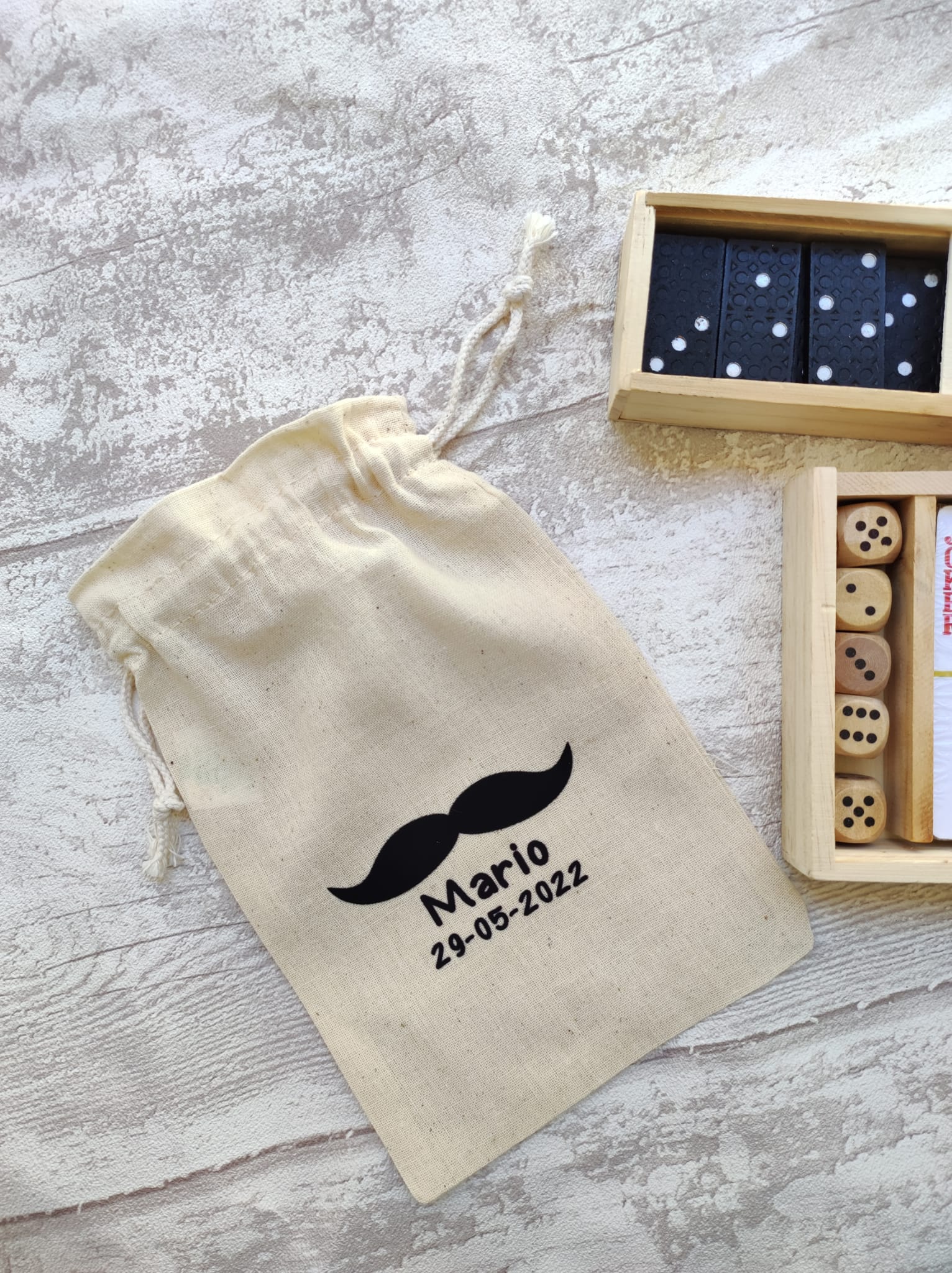 Se vende metido en una bolsita de tela personalizada. Te lo damos todo preparadito para montar.