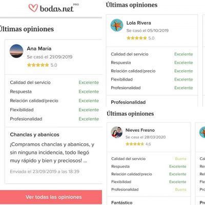 Mil millones de gracias por los comentarios que nos dejáis en plataformas como bodas.net, nos ayudan INFINITO. ¡¡¡Nos hace una requeteilusión!!!!