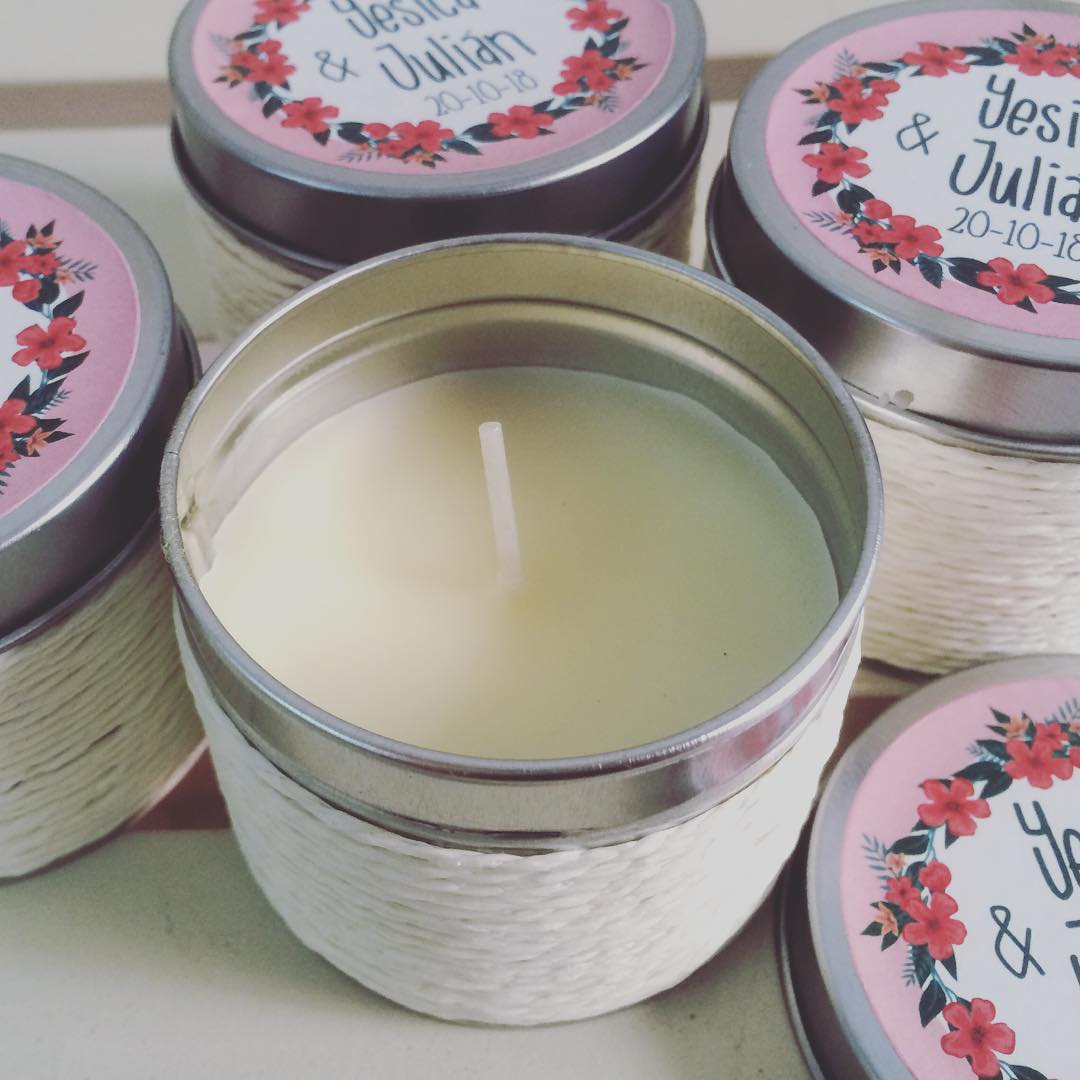 Velas aromáticas olor a vainilla. (Posibilidad de vela en fragancia naranja o café).