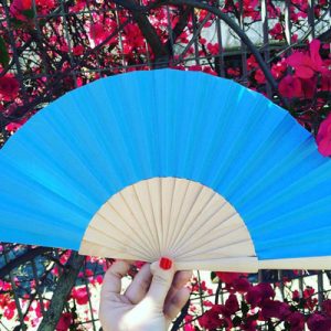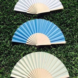 Abanicos de madera y tela, podrás elegir un único color o surtidos. Existe la posibilidad de personalizar con una pequeña pegatina en la varilla del abanico, te lo damos todo preparadito para montar.