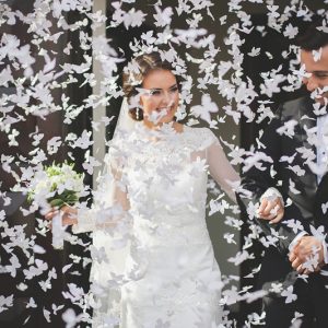 Pack de 10 unidades de conos para rellenarlos de confeti, pétalos o arroz. Material de cartulina con un original diseño dorado, medida 16 cm.