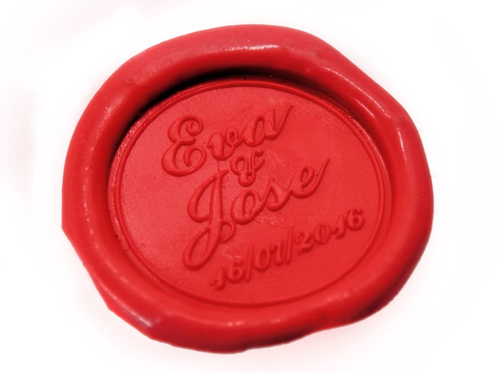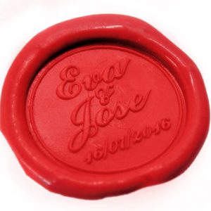Sello de lacre personalizado con las nombres de los novios. Un sello sencillo y elegante que dará un toque romántico a tus invitaciones de boda, papelería, decoración y todos los complementos de tu boda.
