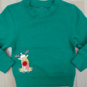 Graciosa sudadera de navidad con El Reno, con una divertida frase. Puedes elegir el texto. Especifica en Comentarios